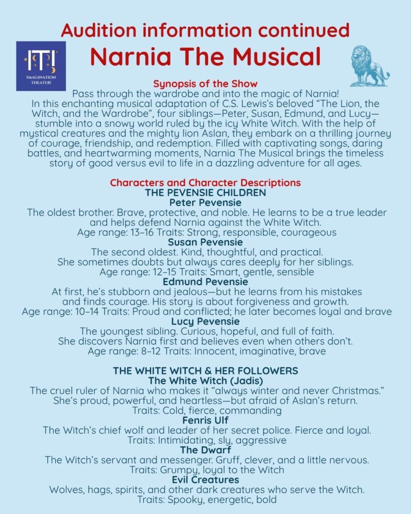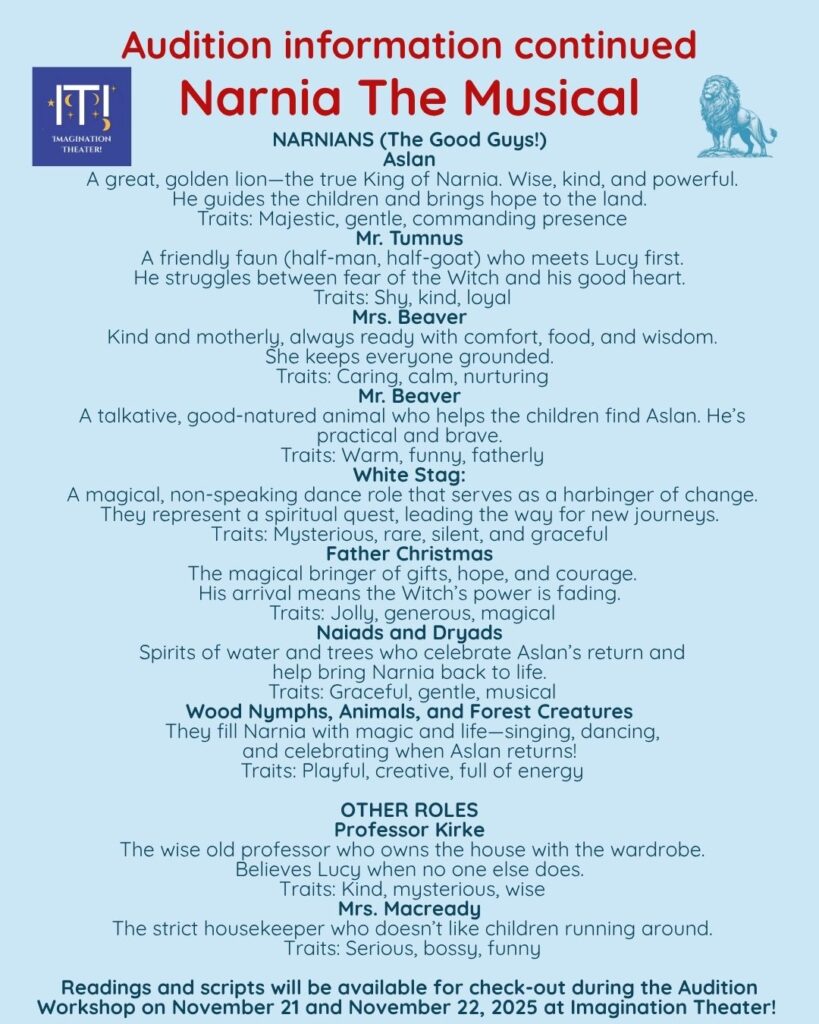 Imagination Theater holds auditions up to 6 months in advance of a show opening.