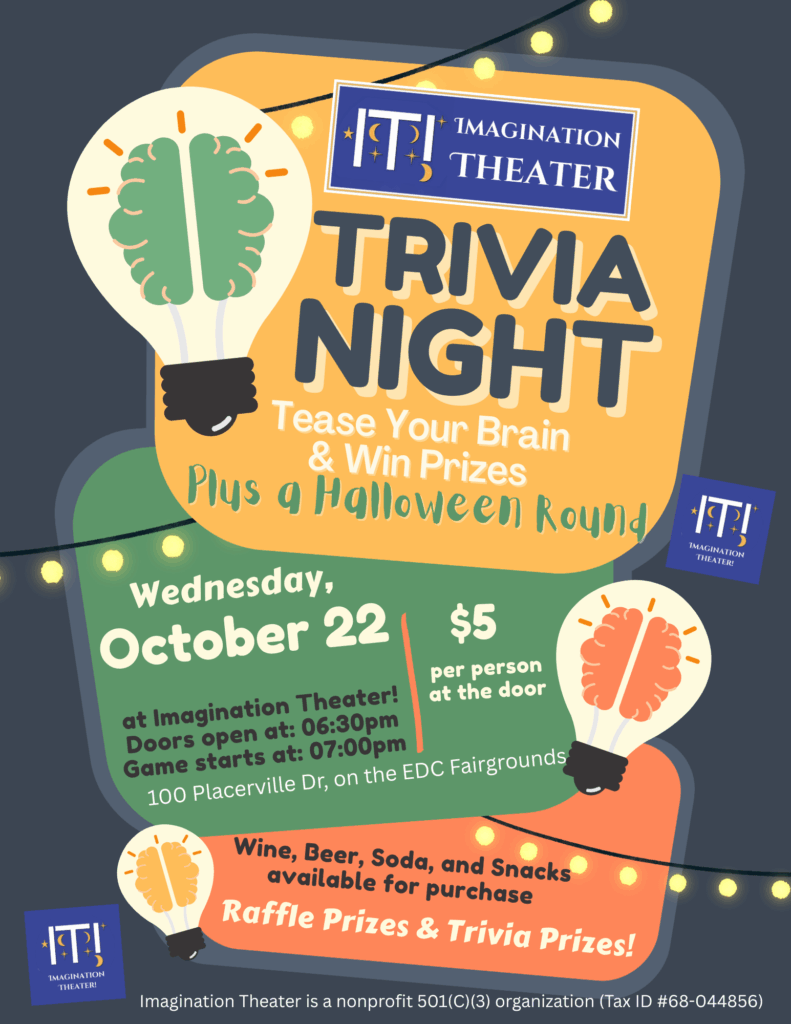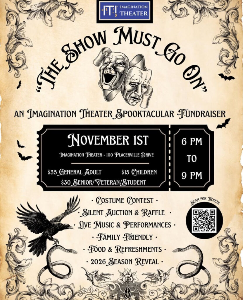 Come join us for a night of high-spirited fun and support your favorite community theater. Enjoy food, refreshments, entertainment, auctions, and a costume contest – all to help fund Imagination Theater’s upcoming season and programs. Each admission includes catered appetizers and a drink ticket along with access to the night’s entertainment and auctions.